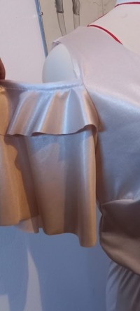 The customer wanted a bell-shaped sleeve, with a small ruffle on top and an opening at the shoulder.